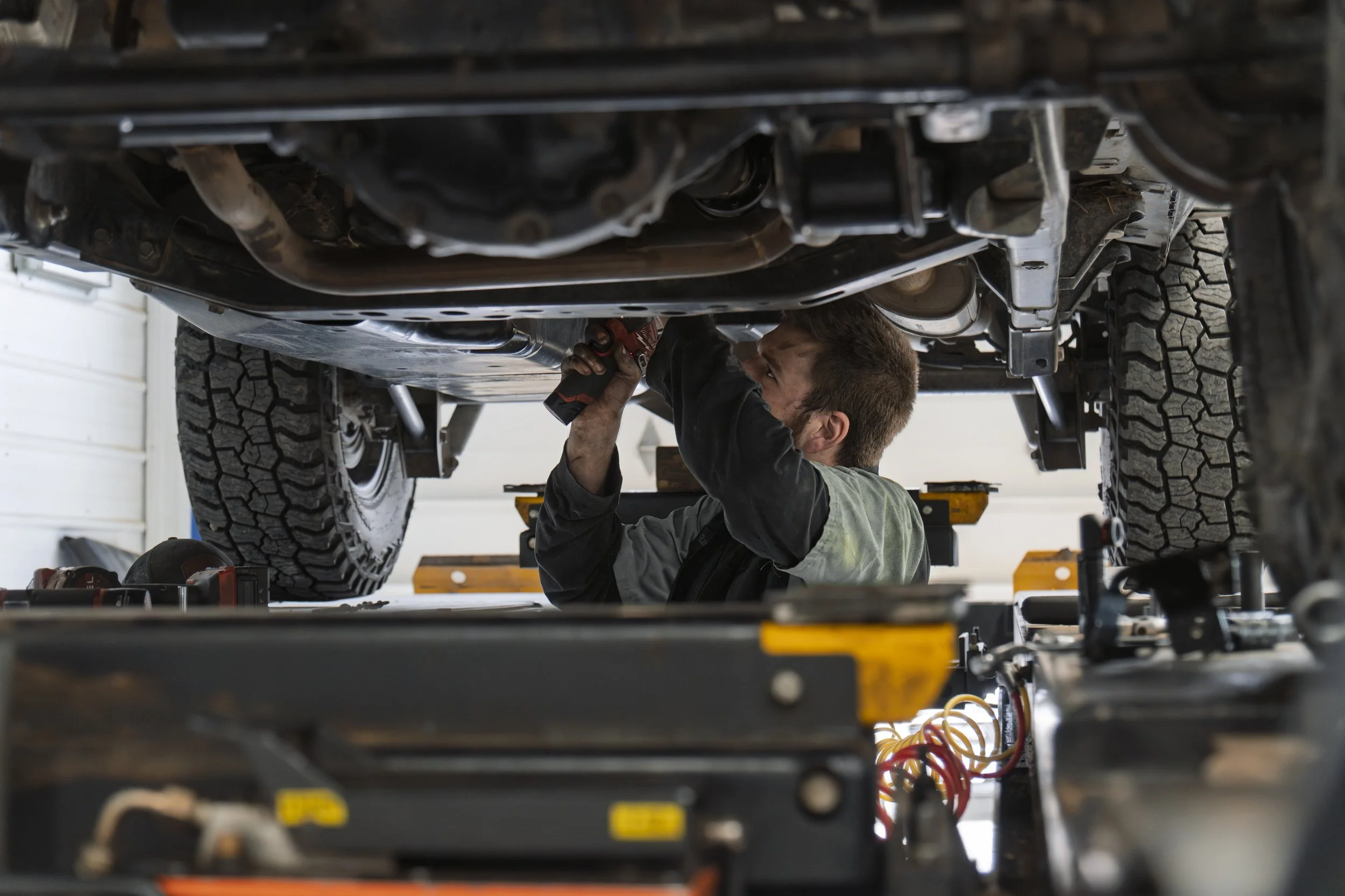 A lot of shops offer a "multi-point inspection" that amounts to a technician glancing under the hood and checking a few boxes on a form. Our 54-point inspection is structured, documented with photos, and performed by ASE-certified technicians who actually get under the vehicle. The road test before the inspection matters — it gives us a baseline for how the vehicle feels and behaves before we start looking at components.